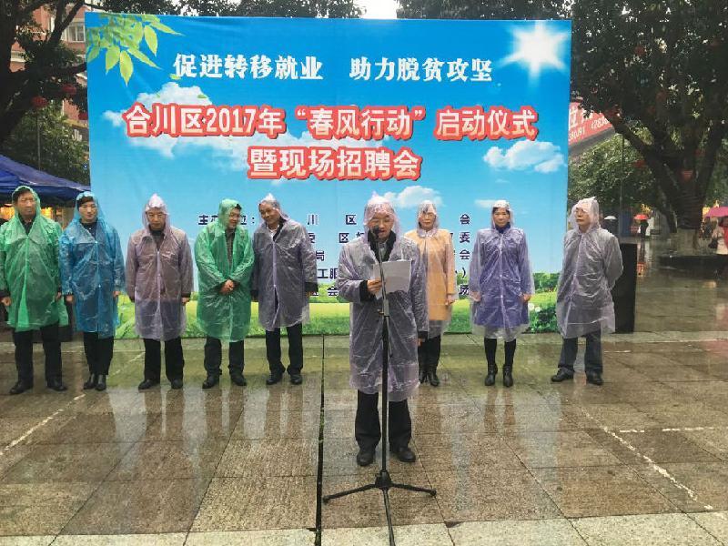 2月21日,由合川区总工会主办,团区委、区妇联、区人力社保局、区经济信息委、区工业园区管委会协办的 “春风行动”启动仪式暨现场招聘会在合川区久长路步行街举行。区委副书记黄茂军,区人大常委会副主任、区总工会主席周富勇,区总工会党组书记、副主席唐明先等出席了启动仪式。