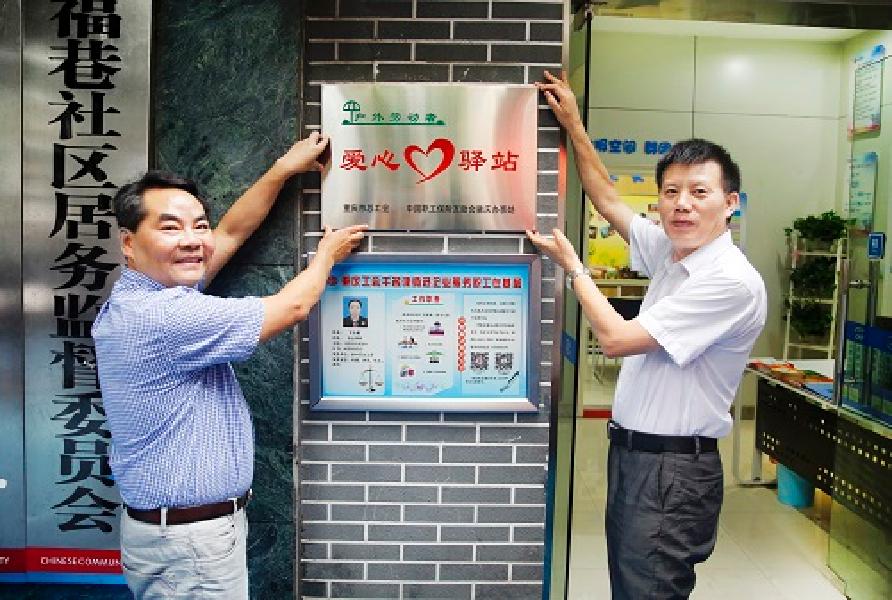 8月11日,重庆市总工会在渝中区大溪沟街道华福巷社区举行户外劳动者“爱心驿站”市级示范点启动仪式暨“夏送清凉”慰问活动。重庆市总工会党组成员、副主席鞠飞,中国职工保险互助会重庆管委会副主任陈昌伟,重庆市渝中区人大常委会副主任、区总工会主席吕椿参加活动。活动现场,鞠飞为渝中区大溪沟街道华福巷社区户外劳动者“爱心驿站”颁发市级示范点牌匾,陈昌伟为该“爱心驿站”赠送空调、电视等设施设备,出席活动的领导向环卫、巡防等150余名户外劳动者赠送清凉大礼包。